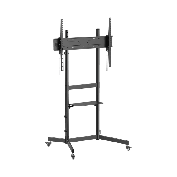 S BOX FS 403, POKRETNI Podni nosac za LCD/LED TV, Za velicinu ekrana od 55 do 100 inca, Do 70 kg tezine, Vertikalni nagib: +5 stepeni / - 10 stepeni , Podesiv po visini, sa tockovima za lako pomeranje, Polica za DVD podesiva po visini nosivosti do 5 kg (400 x 230 mm), Maksimalna visina do ose LCD-a je na 1337 - 1430 mm od poda, Laka montaza, Idealan za prezentacije, sajmove, Dimenzije (s/v/d): 808 x 690 x 1740 mm, Materijal: celik, Plastika, Montaza: VESA 100 x 100 do 800 x 600, FS-403 je pouzdan izbor za svakoga ko trazi stabilno i izdrzljivo resenje za vece ekrane.